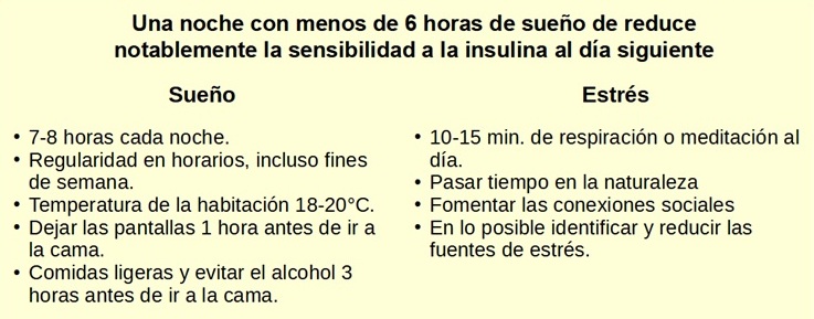 El cortisol, la principal hormona del estrés le indica al hígado que libere glucosa incluso sin haber comido. La falta de sueño aumenta el cortisol, reduce la sensibilidad a la insulina y empeora los marcadores metabólicos al día siguiente. Dormir no es un tiempo de recuperación independiente de la salud metabólica, sino su base.